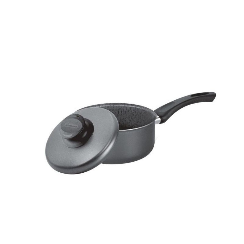 La cacerola con mango Paris 16 de Tramontina es perfecta para preparar y presentar las mejores recetas. Hecha de aluminio con revestimiento interno y externo de antiadherente Starflon Max, mango de baquelita, tapa de grafito de 16 cm de diámetro y capacidad de 1.5 litros.