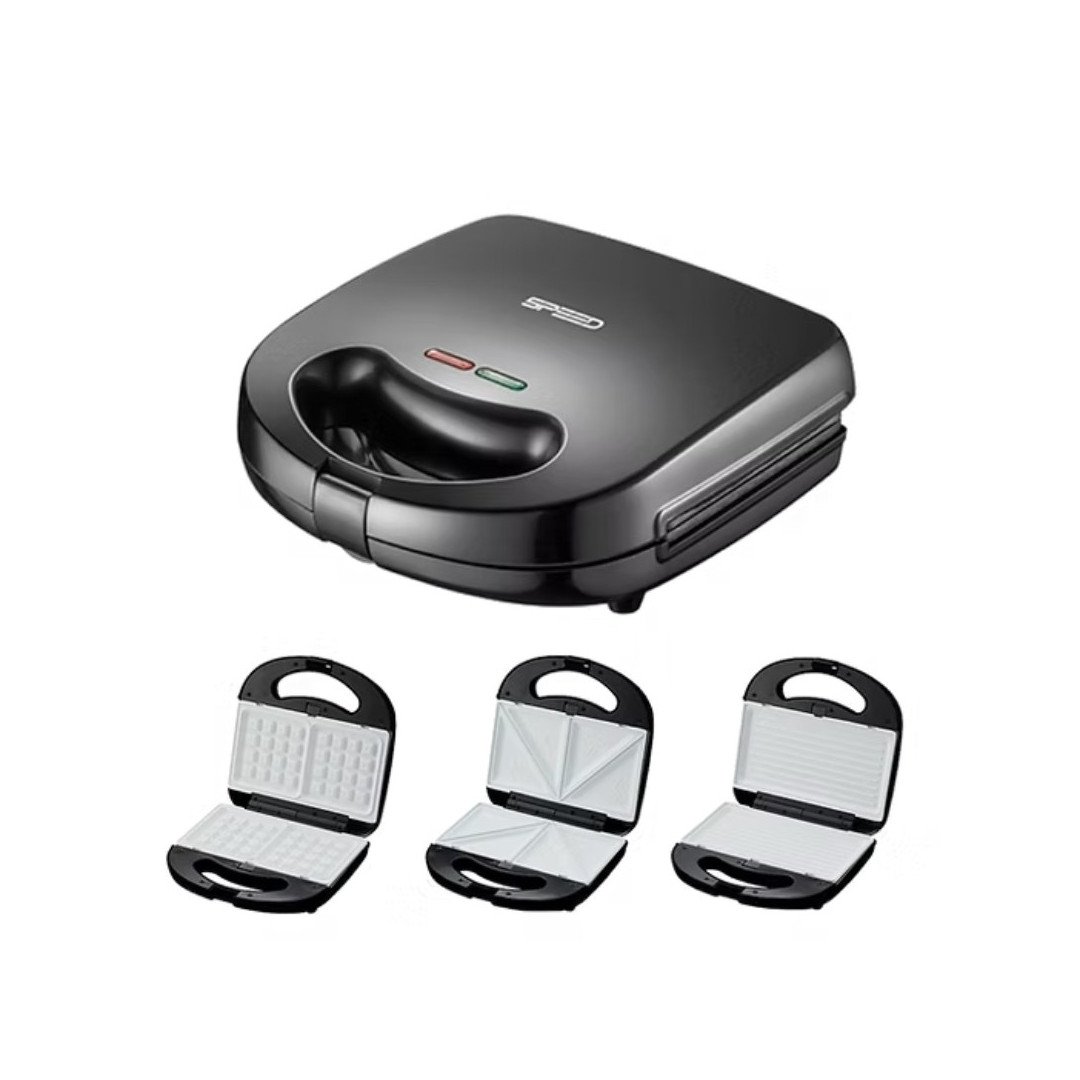 La sandwichera 3 en 1 Speed es la aliada perfecta para tus desayunos y snacks. Con placas intercambiables, podés preparar sándwiches, waffles y grillados en un solo aparato, de forma rápida y sencilla. Su diseño compacto y elegante en color negro combina perfectamente con cualquier cocina.